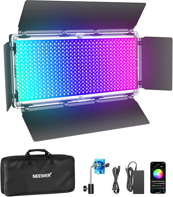 - RGB LED VIDEO LIGHT: Made of CRI 95+ energy-saving 960 pcs SMD LED beads [240 pcs White/ 240 pcs Yellow/ 480 pcs RGB] with excellent heat dissipation and more durable to use. Features adjustable color temperature ranging from 3200K-5600K, stepless dimming from 0-100% and 0-360 full color and color saturation adjustment, it provides shadowless and even lighting for creative applications